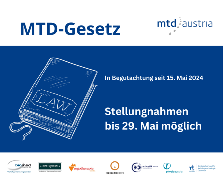 Die bei MTD-Austria organisierten Berufsverbände begrüßen, dass einige für uns sehr wichtige Punkte in den neuen Gesetzesentwurf aufgenommen wurden. Wir sehen aber noch weiteren Optimierungsbedarf. Daher bitten wir Sie, uns mit Ihrer Stellungnahme zu unterstützen, damit auch diese Forderungen Eingang in den Gesetzesentwurf finden.